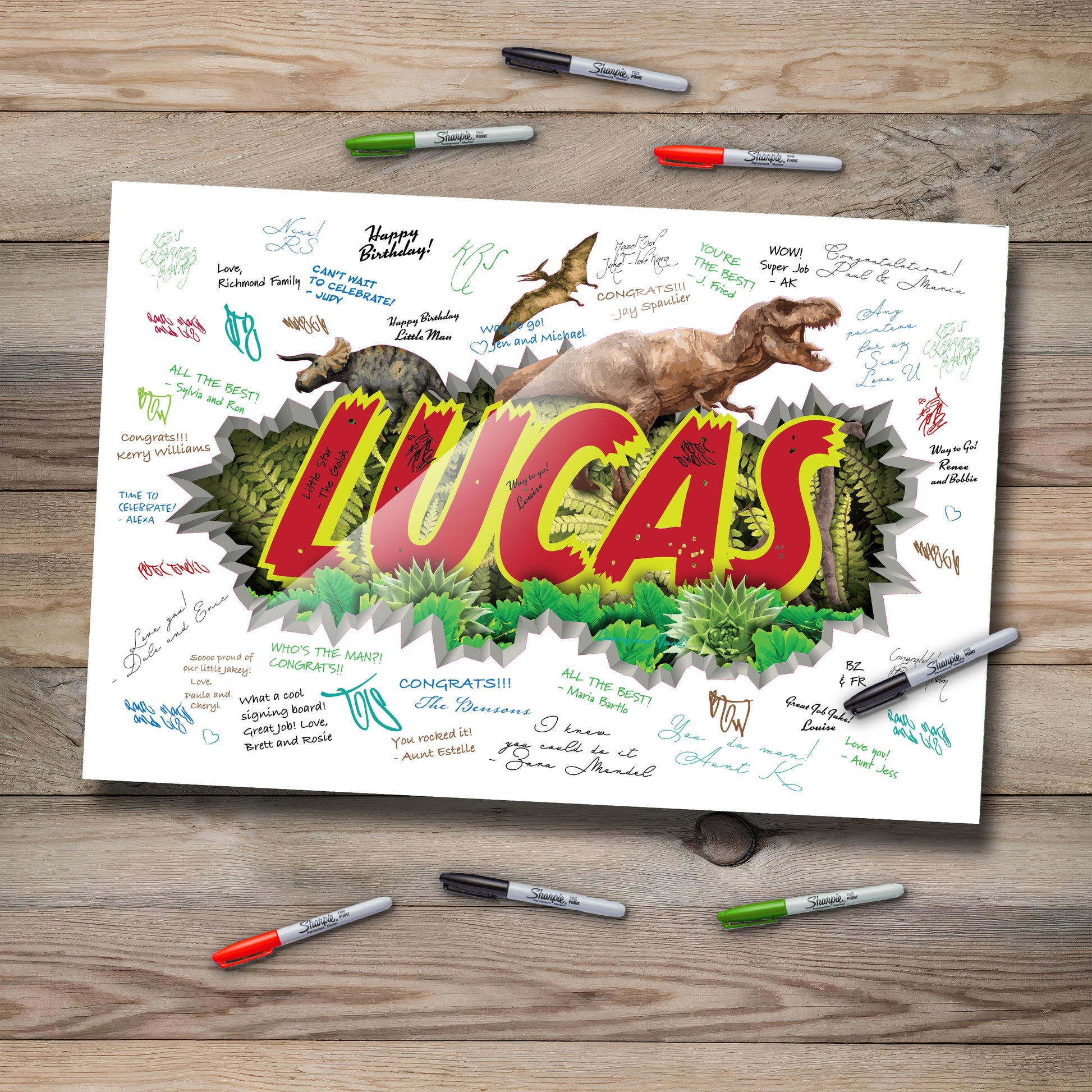 Dinosaur Signing Board is a memorable and lasting way to capture and display all of your guests sentiments on your special day. It is expertly printed on 1/4" Acrylic, providing a sleek modern aesthetic. Second Surface Printing separates your custom art from the signature layer. Comes with integrated float hanger hidden on the back making it a breeze to display after your event. No worry guarantee :) We can share your art for approval BEFORE I send anything to production. Just ask!