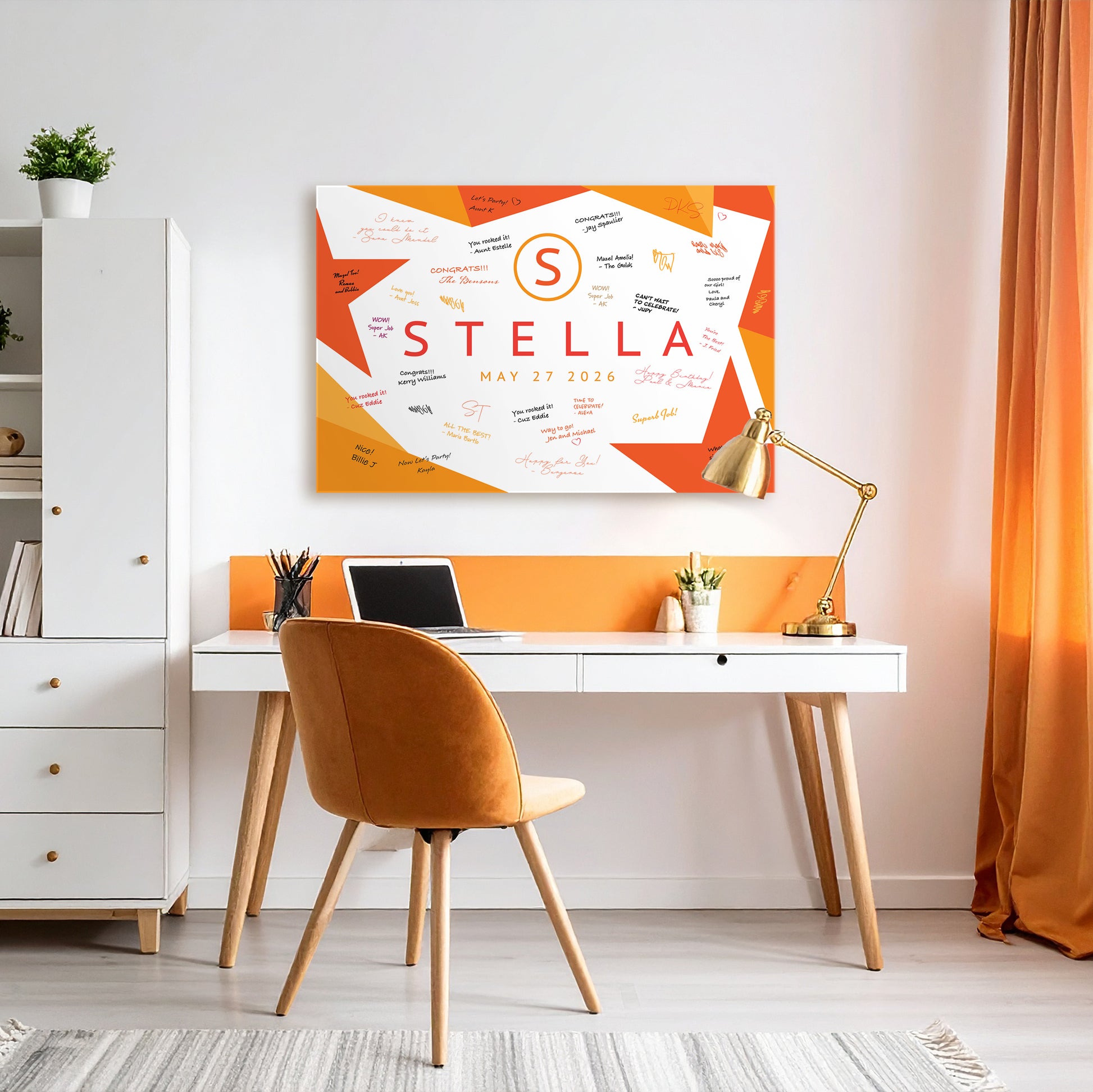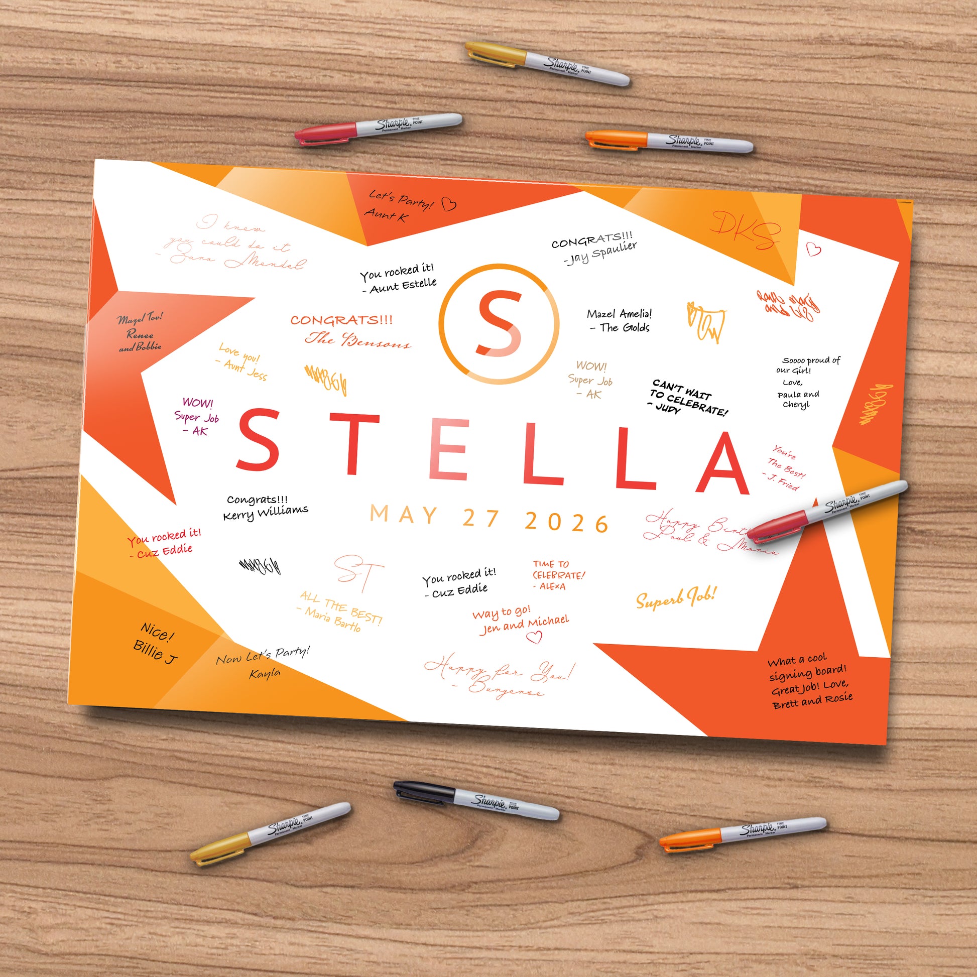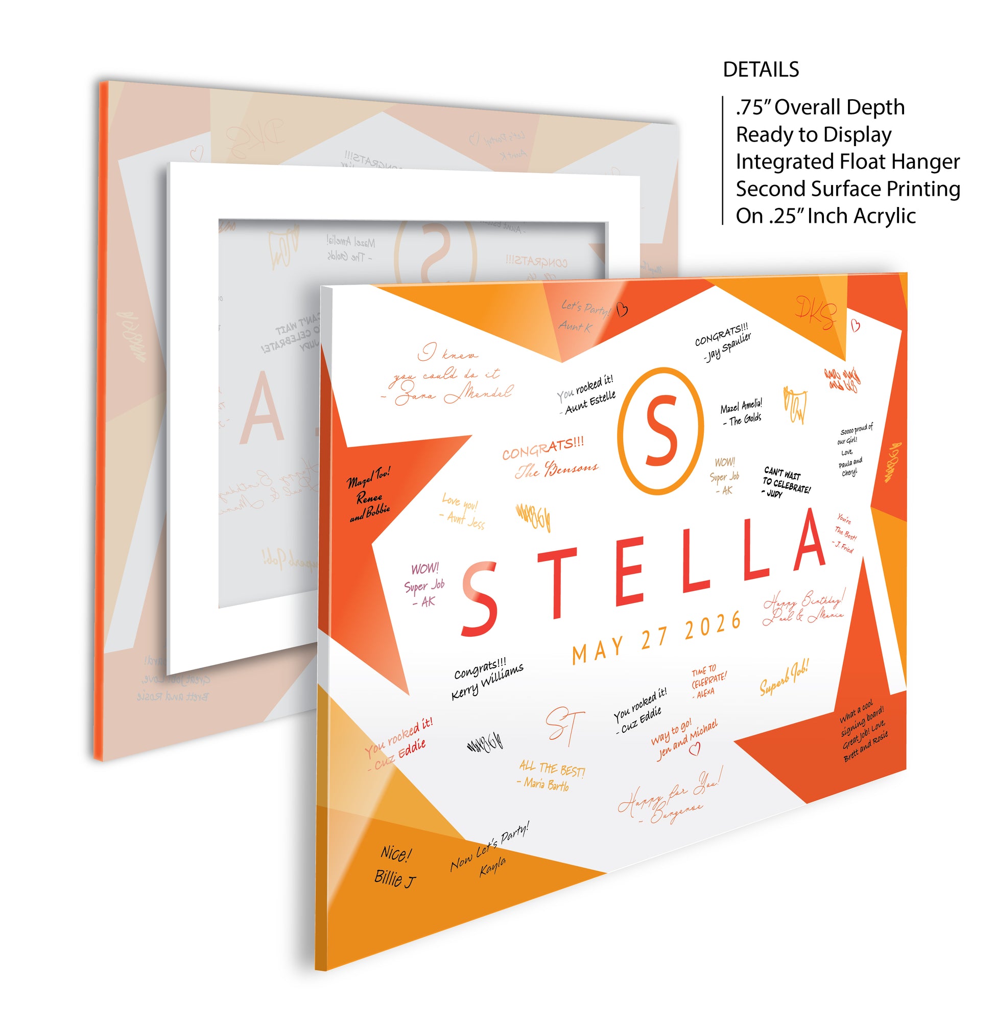Capture love and well-wishes with this contemporary star-themed signing board, perfect for birthdays, weddings or any milestone event. A keepsake guests can help create—made just for her unforgettable day!. It's the perfect blend of beauty and meaning—letting your loved ones leave messages that last a lifetime. It is expertly printed on 1/4" Acrylic, providing a sleek modern aesthetic. Second Surface Printing separates your custom art from the signature layer. Comes with integrated float hanger hidden on the back making it a breeze to display after your event. No worry guarantee :) We can share your art for approval BEFORE I send anything to production. Just ask!