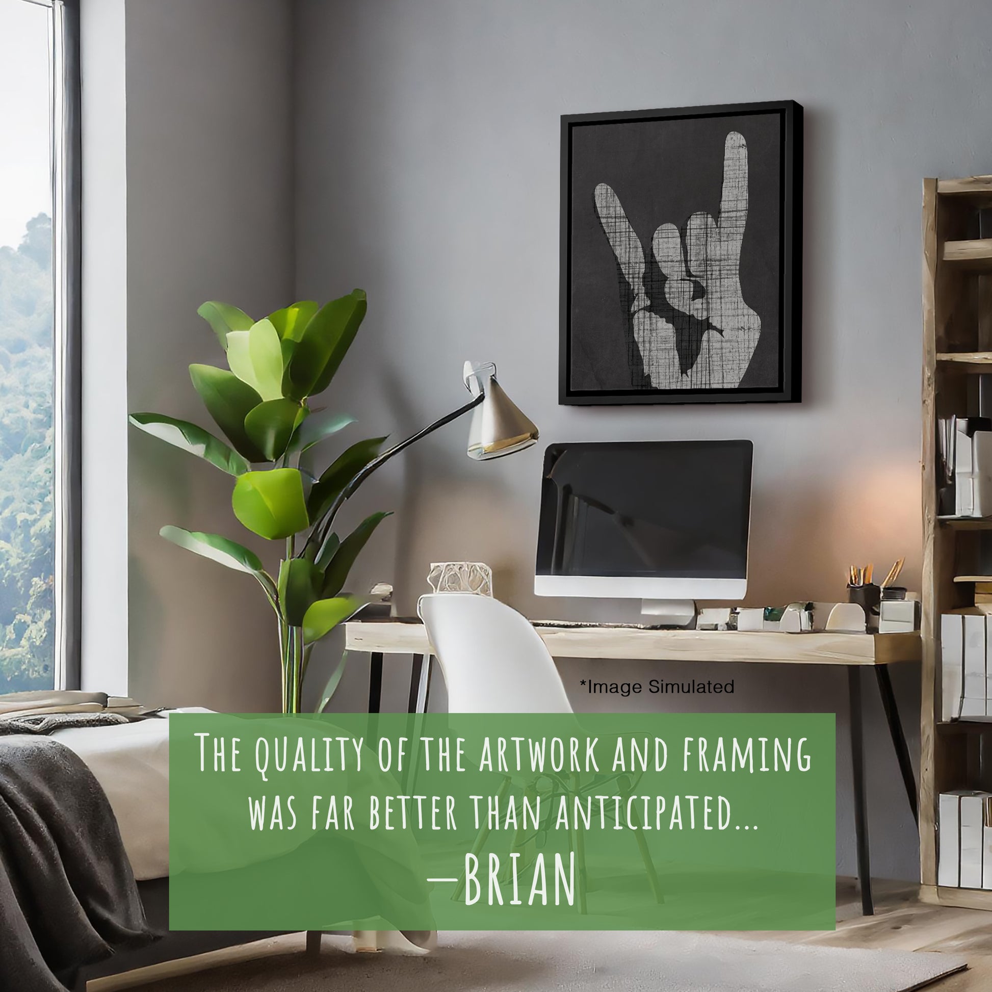 Rock On rustic modern art canvas arrives ready to hang, with the following details and options: